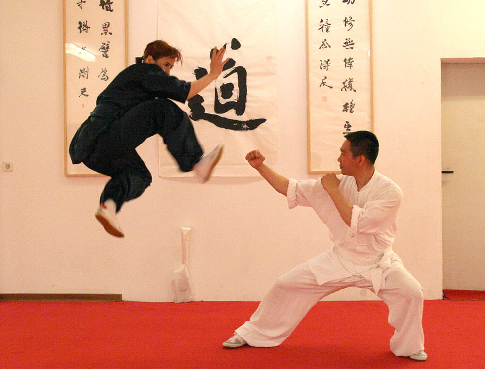 Unsere Kung Fu Trainingsmethode zeichnet sich durch das fachgerechte Erlernen der Basisschritte chinesischer Kampfkünste aus. Reiterstand, Bogenschritt, Leerschritt und weitere sollen zunächst sicher beherrscht und verstanden werden. Dabei werden Muskeln entwickelt und die Sehnen elastisch gemacht. Die Koordinationsfähigkeit wächst und es folgen die geschmeidigen, weiträumigen Bewegungsfolgen des Kung Fu.